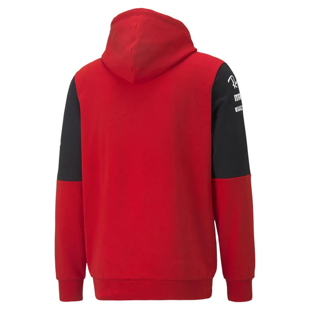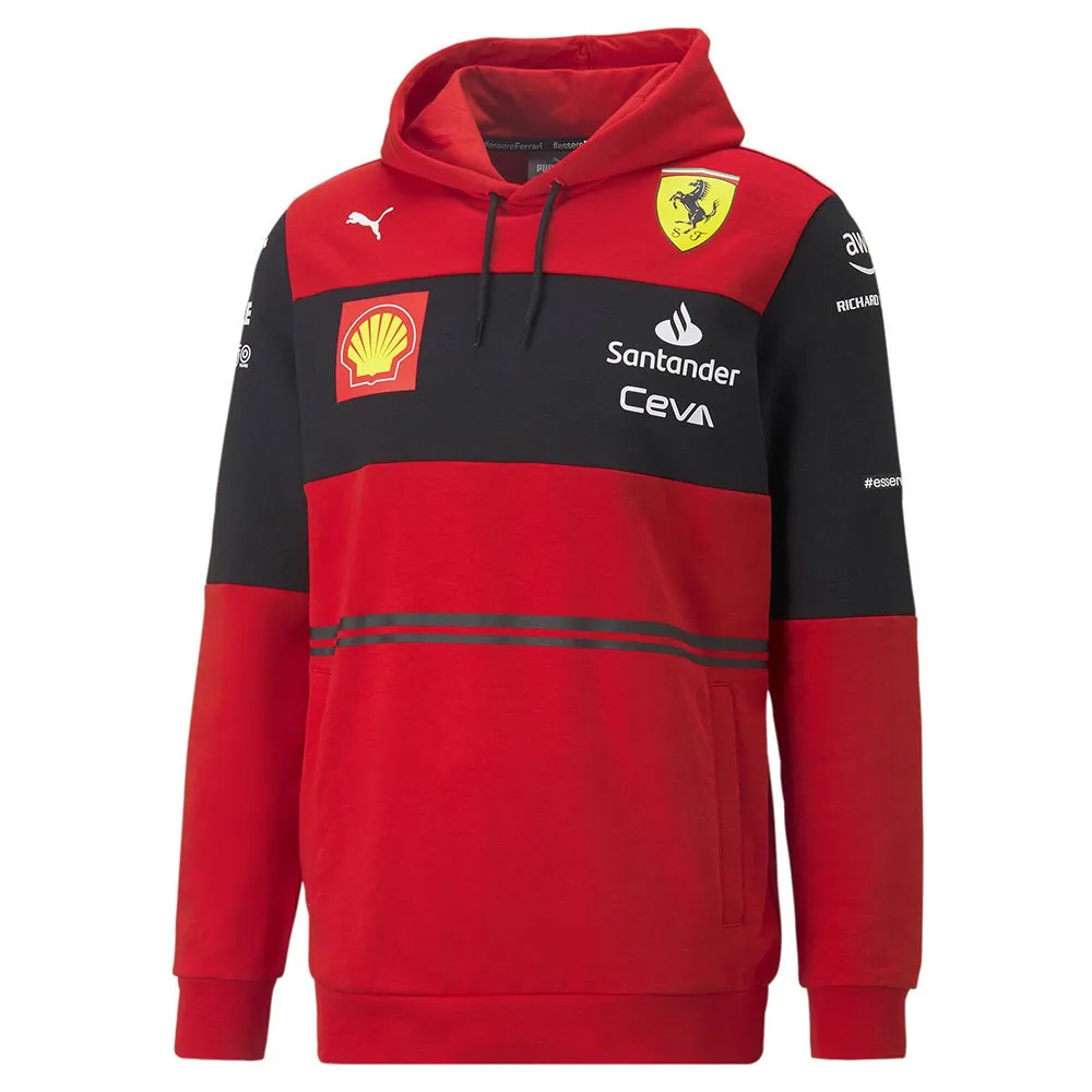 Wear your passion for Scuderia Ferrari with comfort and pride. This motorsport hoodie echoes historic race suits with its bold colour blocking, while a graphic inspired by Scuderia Ferrari’s Gestione Sportiva building in Maranello adds a modern twist. Worn on the grid by the Scuderia Ferrari team during the 2022 Formula 1™ season, this hoodie is an essential addition to your motorsport wardrobe.